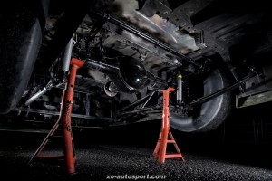 - ช่วงล่างหลังมีการสร้างจุดยึดใหม่ทั้งหมด สร้างคานหน้าเป็นโครงขึ้นมา เพื่อยึดกับปลายของ A-Arm ทั้งสองด้าน โช้คอัพเปลี่ยนจุดยึดมาเป็นแบบ “หลังเพลา ตั้งตรง” ทั้งคู่ แหนบเปลี่ยนใหม่ ส่วนแท่งด้านบนจะเป็น “เหล็กกันโคลง” ที่จะมีจุดยึดกับเพลาท้าย คอยต้านการบิดตัว ทำให้ล้อทั้งสองฝั่งกดลงพร้อมๆ กัน