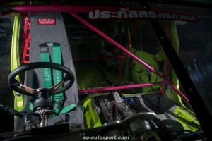 คันนี้ “เจ้าของขี่เอง” ก็เล่าให้ฟังว่า ฟีลลิ่งมันต่างจากกระบะแบบสิ้นเชิง เพราะนั่งหน้าสุด แถมตำแหน่งเบาะก็นั่งสูง รถก็สูง ทำให้ตอนวิ่งลอยลำแล้ว “มีเหวอ” กันบ้าง เพราะจะรู้สึกว่ามันเร็วมาก ด้วยความที่ “จุดศูนย์ถ่วง” ของคนขับอยู่สูง ซึ่งปกติแล้วรถแข่งก็จะยิ่ง “นั่งเตี้ย” ทำให้รู้และซึมซับอาการของรถได้เร็ว การตอบสนองของคนขับกับตัวรถทำได้ไว แก้ทางได้เร็ว แต่กับรถสูงๆ และยิ่งรถช่วงล้อยาวมากๆ แบบนี้ วิ่งตรงได้เปรียบจริงอยู่ แต่การรับรู้ก็จะทำได้ช้าลง คนขับก็ต้องอาศัย “ขยันซ้อม” ใช้ความเคยชินในการคุมรถ และรู้อาการของรถ ถ้าไปได้ “ทรง” ก็ถือว่าโอเคครับ…