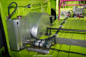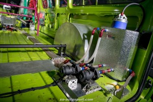 - ย้ายถังน้ำมัน (มาอยู่หลังซ้าย) ถังน้ำสำหรับอินเตอร์คูลเลอร์ (อยู่หลังขวา) การเก็บงานเรียบร้อยดีครับ อย่างที่บอก ทำให้รถดูปลอดภัย สวยงาม และมีคุณค่ามากขึ้นจริงๆ ส่วนคานสีดำ นี่เป็นจุดยึดหัวแกนโช้คอัพ มีรูให้เลือก 3 ระดับ
