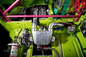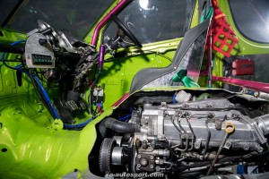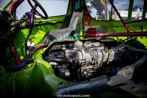 อยากจะนำเสนอของแปลกๆ ประหลาดๆ บ้าง คันนี้ก็เข้าแก๊ปเลย ตอนแรกก่อนที่จะเป็นสเต็ปนี้ ก็เรียกแขกได้มากพอสมควร กับเวลา 12.XX วินาที กับเกียร์ H-Pattern แต่พอทำออกมาใหม่ ใสๆ วัยรุ่นชอบ ก็เลยนำเสนอในเวอร์ชั่นใหม่ กับเกียร์ Air Shifter ส่วนความสวยงาม ก็เล่นสีสันแสบทรวง การวางระบบต่างๆ ดูสะอาดเรียบร้อย การยึดอุปกรณ์ต่างๆ ก็แน่นหนาดีครับ เห็นถึงความตั้งใจทำ เราก็ถือว่าเป็นความรู้ใหม่ๆ ในการทำรถแบบนี้ขึ้นมา ซึ่งต้องศึกษาและทำการบ้านให้เยอะขึ้น ก็เอาใจช่วยให้ถึงฝั่งฝันตามเวลาที่ต้องการนะครับ…