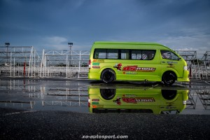 คันนี้ก็เป็น Project ร่วมกัน ต้นเรื่องมาจาก “เอก” ที่ทำกิจการรถตู้โดยสาร “ศรีภาชนะ” งานนี้ “มีของ” อยู่ เลย “คัน” อยากจะลองทำรถตู้ซิ่งวิ่งสนามแบบ “เต็มระบบ” มองว่ามันมีความแปลก บ้า ท้าทาย คันนี้เป็นคันแรกที่ทำครบระบบ แล้วออกมาวิ่ง ก็เลยอยากจะทำให้มันสมบูรณ์ที่สุด ต้องค่อยๆ ไล่ ทุ่มเทกับมันให้มากขึ้น เนื่องจากสรีระไม่เหมือนกระบะที่หลายคนคุ้นเคย ยังคงมีข้อเสียเปรียบอยู่ แต่ยังไงก็จะทำให้มันเร็วที่สุด เป้าหมายเวลาอยู่ที่ “10.XX วินาที” ต้องทำให้ได้ครับ…