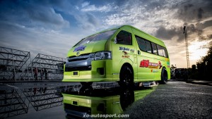 นอกเรื่องรถแข่งหน่อยก็แล้วกัน สำหรับ HIACE โฉมปัจจุบัน ก็จะมีทั้งหมด 3 แบบ ดูจะเหมือนกัน แต่ “แตกต่างกันทั้งหมด” แบบแรก ตัวปกติ จะเป็น “บอดี้แคบ หลังคาเตี้ย ช่วงสั้น” ตัวนี้ญี่ปุ่นจะชอบแต่งกัน เพราะไซส์มันน่ารักกวนๆ ดี ส่วนตัว COMMUTER จะเป็นแบบ “บอดี้กว้าง หลังคาสูง ช่วงยาว” จริงๆ แล้ว พื้นฐานเป็น Cargo Van ทั้งสองตัว แต่ดัดแปลง ใส่เบาะ เจาะกระจก เพื่อเป็นรถตู้โดยสารทีหลัง และตัว VENTURY ไอ้นี่จะเป็นแนวหรูหรา “บอดี้กว้าง หลังคาเตี้ย ช่วงสั้น” ประตูสไลด์ข้าง 2 ด้าน อันนี้จะเป็นรถตู้โดยสารจริงๆ ที่สามารถเข้าออกประตูได้ทั้ง 2 ฝั่ง…